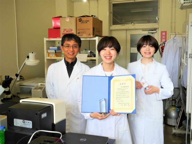 また、指導した北村教授は受賞にあたり「学生達が思い思いに努力したことが評価され、獣医生理学ユニットとしては、3年連続で栄誉のある賞を受賞できてとても光栄に思っている。USP2を中心とした生活習慣病における研究はやるべきことはまだ多くあると考えている。今回の受賞を励みとしてさらに研究を進め、社会の役に立つような研究を展開していきたい」と述べました。