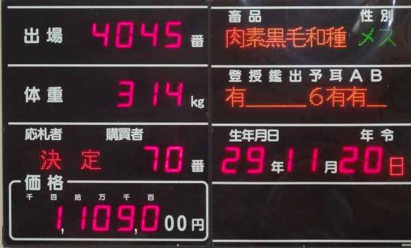 また、「ゆり29」の市場成績は2018年10月11日にホームページに掲載しています→本学肉牛農場の牛が農場開設以来の最高額で落札