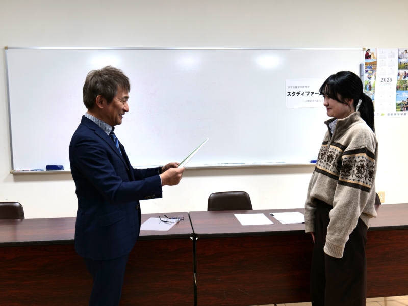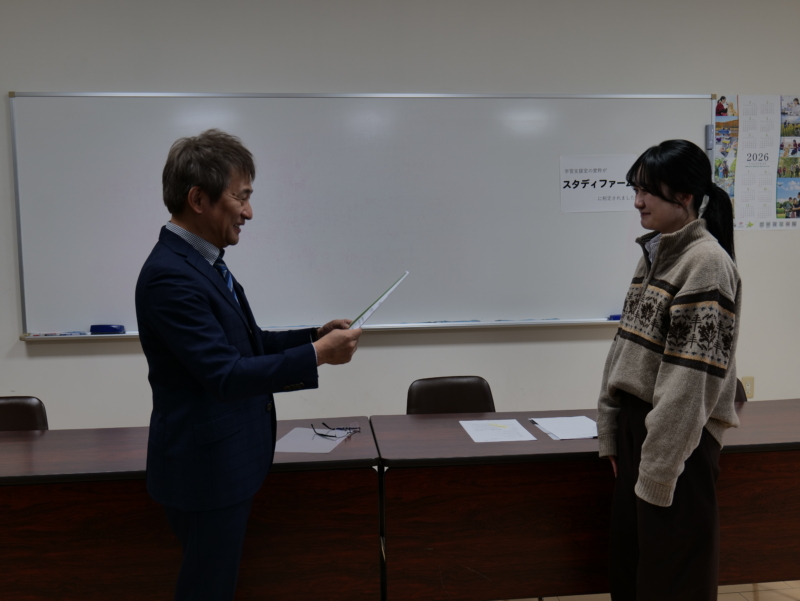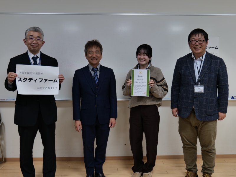 2025年12月15日(月)、クループ学習室2(B4号館2階)において、学習支援室「愛称」採用表彰式が行われ、学内公募により決定した学習支援室の愛称が発表されました。