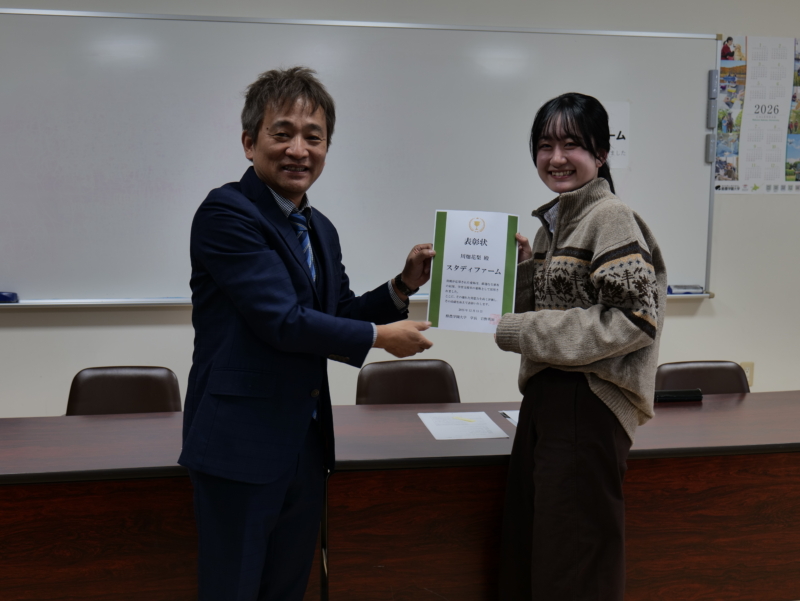 本学食と健康学類山口紗梨那さんが北海道畜産草地学会第14回大会でベストプレゼンテーション賞を受賞