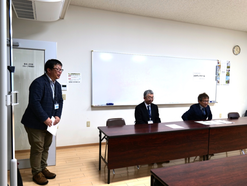共通教育開発室長の栃原孝志准教授から、採用された川畑さんに生協利用券5,000円分チャージを贈られることが伝えられました。学習支援室の利用状況は2011年頃から利用者が増加し、年間1,000人程度が利用していました。しかしながら、コロナ禍を経て利用者は減少傾向にあり、近年は年間300人から500人程度で推移しています。このままでは衰退が懸念されるため、今回の愛称の募集・決定を通じて利用促進に繋げていきたいと考えています、と説明されました。