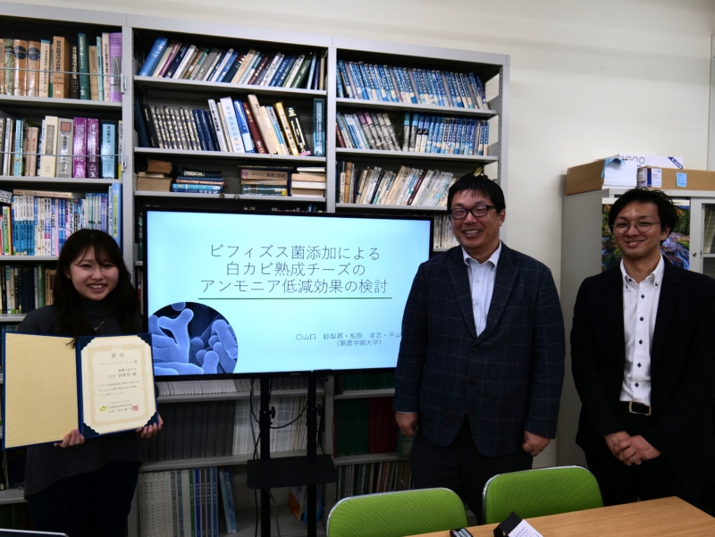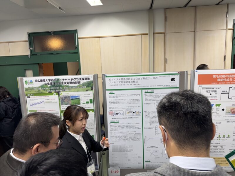 2025年12月6日(土)・12月7日(日)で開催された北海道畜産草地学会第14回大会において、本学食と健康学類4年の山口紗梨那さん(乳科学研究室)がベストプレゼンテーション賞を受賞しました。