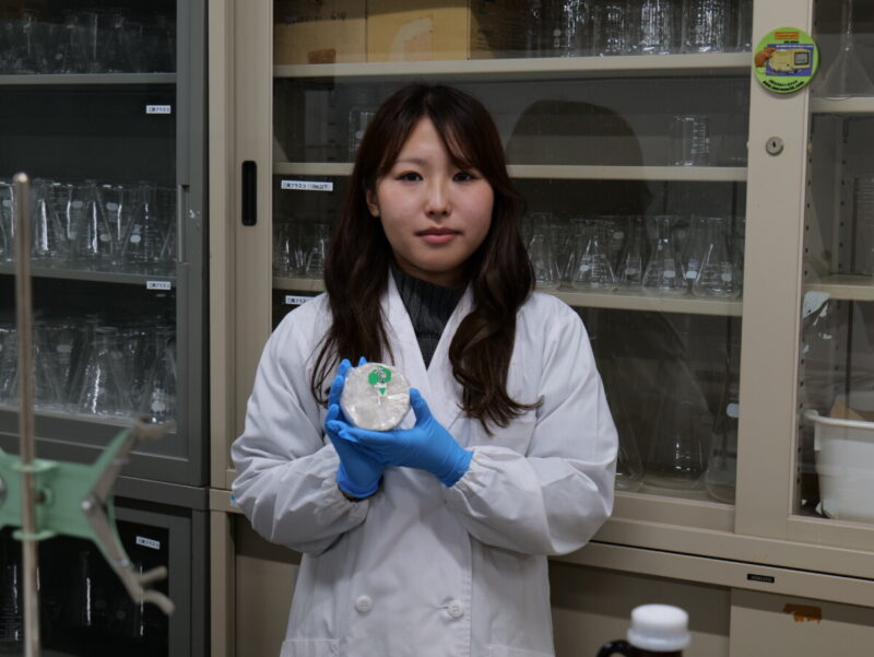 この研究は昨年から準備を行い、今年の4月から解析を進めてきました。どの菌株がアンモニアを減らす効果があるのか検証するため、基礎データ作りに試行錯誤を繰り返しました。今後の山口さんの研究は、研究データ収集に協力している研究室の3年生へと引き継がれていきます。山口さんは卒業後、北海道の乳製品製造企業へ就職し、ヨーグルト・チーズ・アイスクリーム・牛乳などの商品開発に携わります。