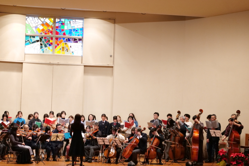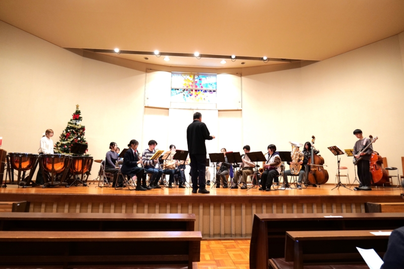本年も酪農学園クリスマス礼拝演奏奉仕として、学園の教職員と大学生・酪農学園大学附属とわの森三愛高等学校の有志が合唱団と吹奏楽団・管弦楽団を臨時編成し礼拝を盛り上げました。