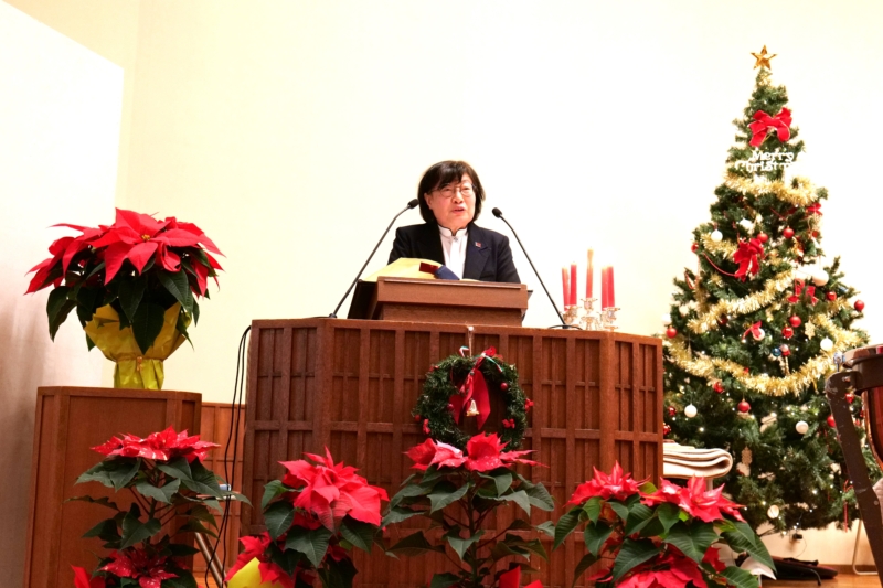 朴美愛宗教主事による司会のもと、多くの参加者が讃美歌を歌いクリスマスを祝福しました。