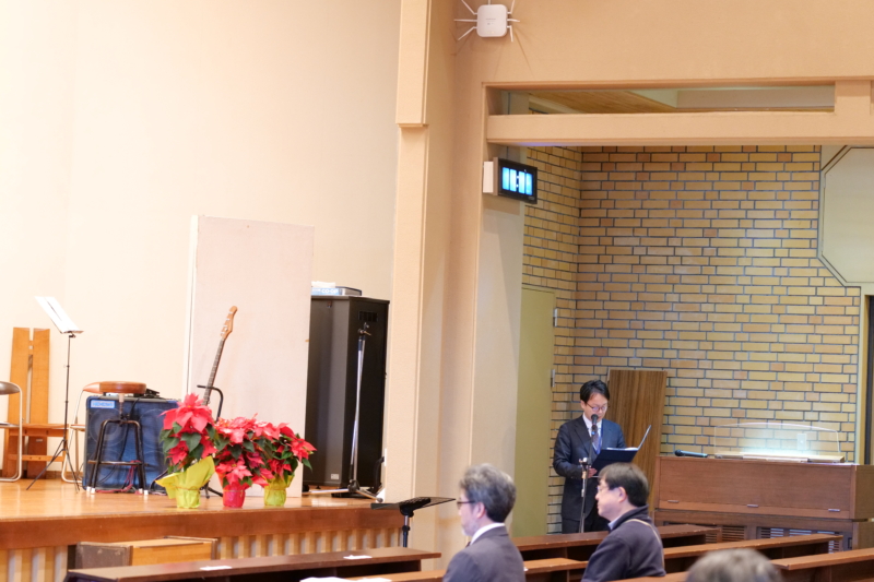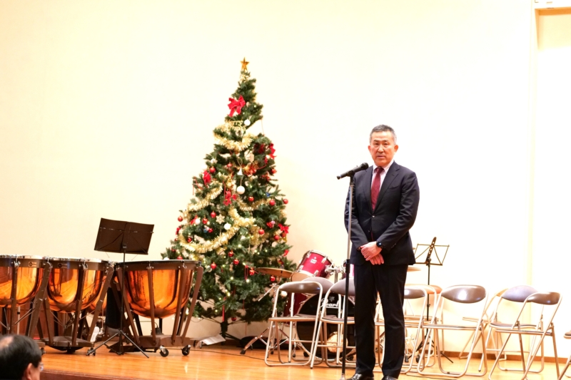 クリスマス礼拝及び永年勤続表彰式の最後は髙島英也理事長による挨拶をもって終了となりました。