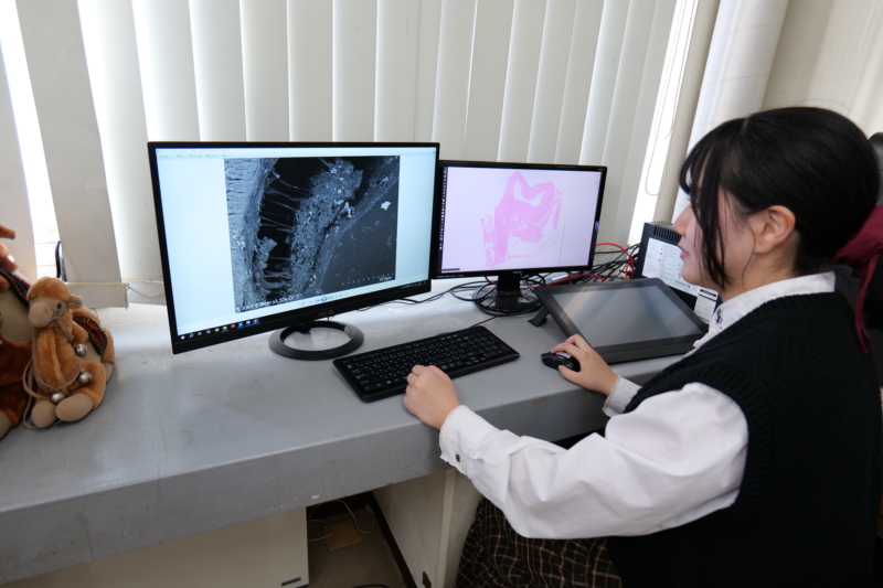 「この度は、優秀な評価をいただき、大変嬉しく思います。本研究は、従来の脱灰処理では消失してしまうエナメル質を、非脱灰のまま観察する手法の検討を行いました。歯石とエナメル質の関係性をより鮮明に可視化できたことは、今後の臨床現場に還元しうる成果として大きな意義があると考えています。今回の受賞は、粘り強くご指導いただいた先生方のおかげです。今後も精進してまいります。」