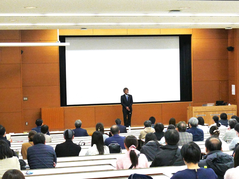 本学と立教大学は、2025年2月に環境分野での連携協定を締結しました。環境問題は、教室の中だけでは解決できません。現場と都市、自然と人をどうつなぐか。そこに両大学の共通の志があります。その第一歩として、来年1月10日に北海道・酪農学園大学で、3月14日にここ立教大学で、記念シンポジウムを開催します。ぜひ楽しみにしてください。そして今日は、研究の話より先に、まず「味」で本学を知っていただこうということで、立教大学のご厚意により、酪農学園大学のチーズやバターなどの乳製品を販売させていただいています。このあと、私自身も牛柄エプロンを着て、販売ブースに立つ予定です。学長が売るチーズ、なかなかレアです。ぜひ手に取っていただき、「環境を学ぶことは、日々の選択から始まる」ということを、少しだけ感じてもらえたら嬉しいです。