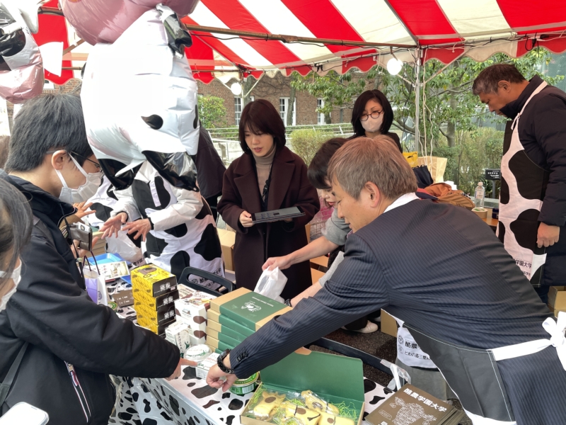 ブースには、本学の乳製品の販売を知った卒業生や在学生の保護者の皆さんにお立ち寄りいただき、盛況のうちに終了しました。両大学の連携が単なる協定を超え、人と人との心をつなぐ架け橋となったことを象徴するような、素晴らしい時間となりました。
