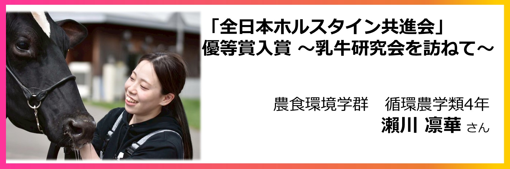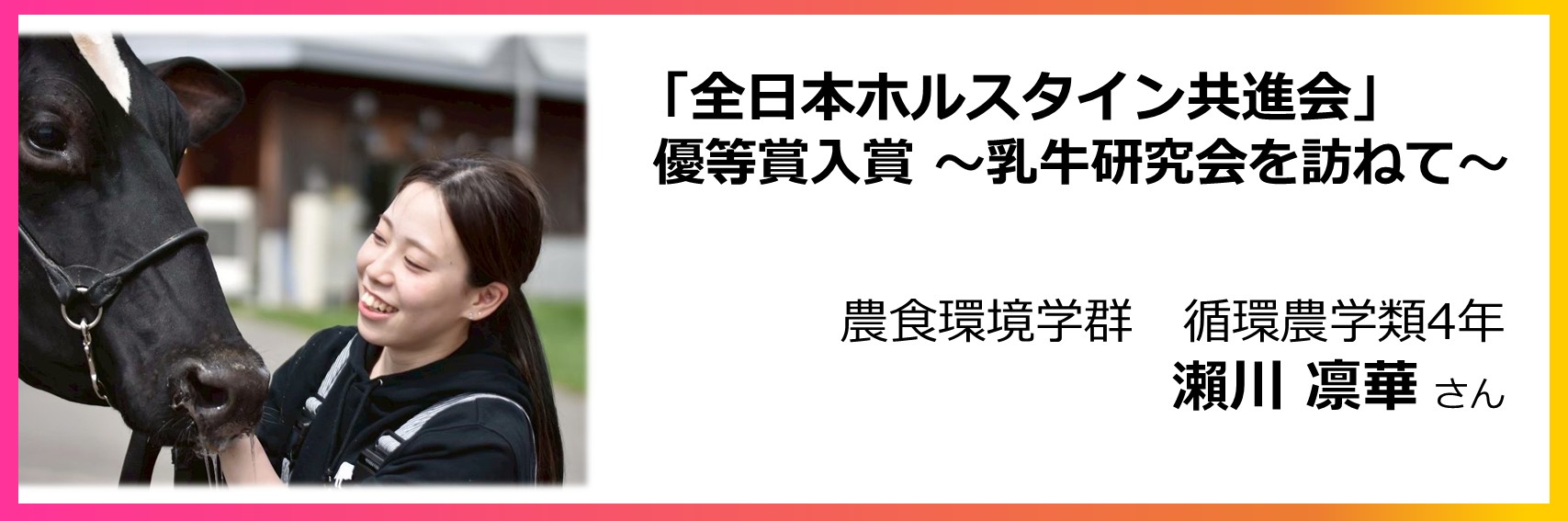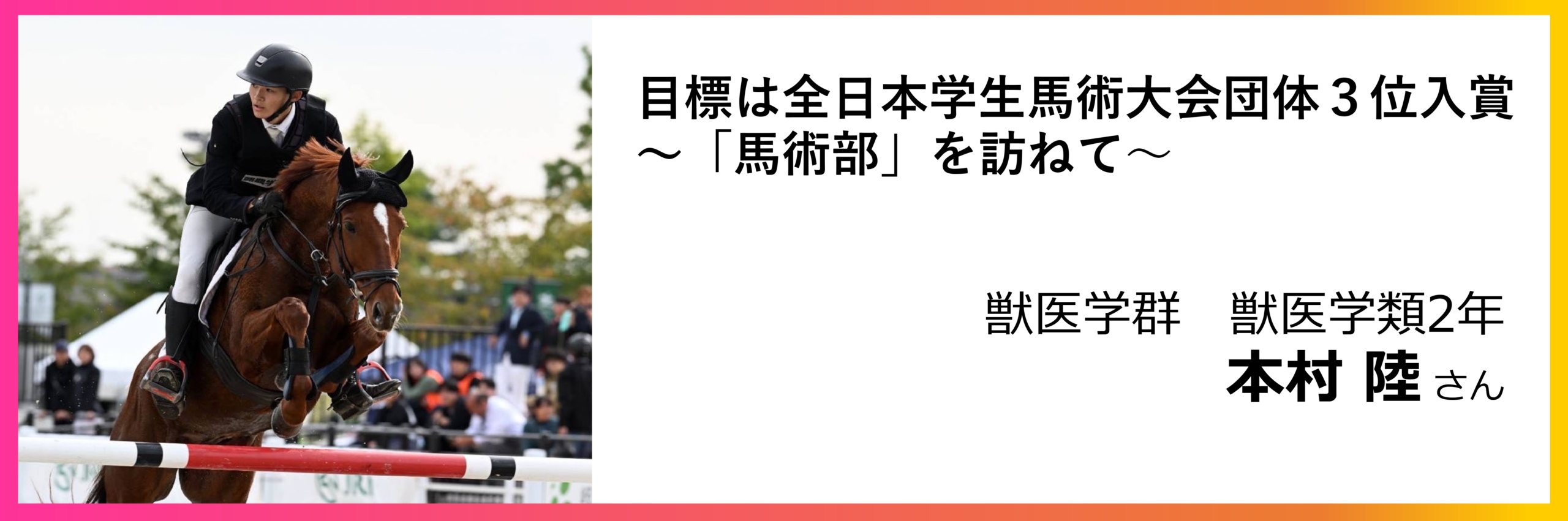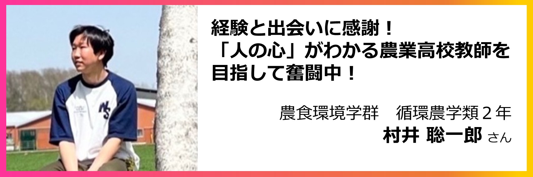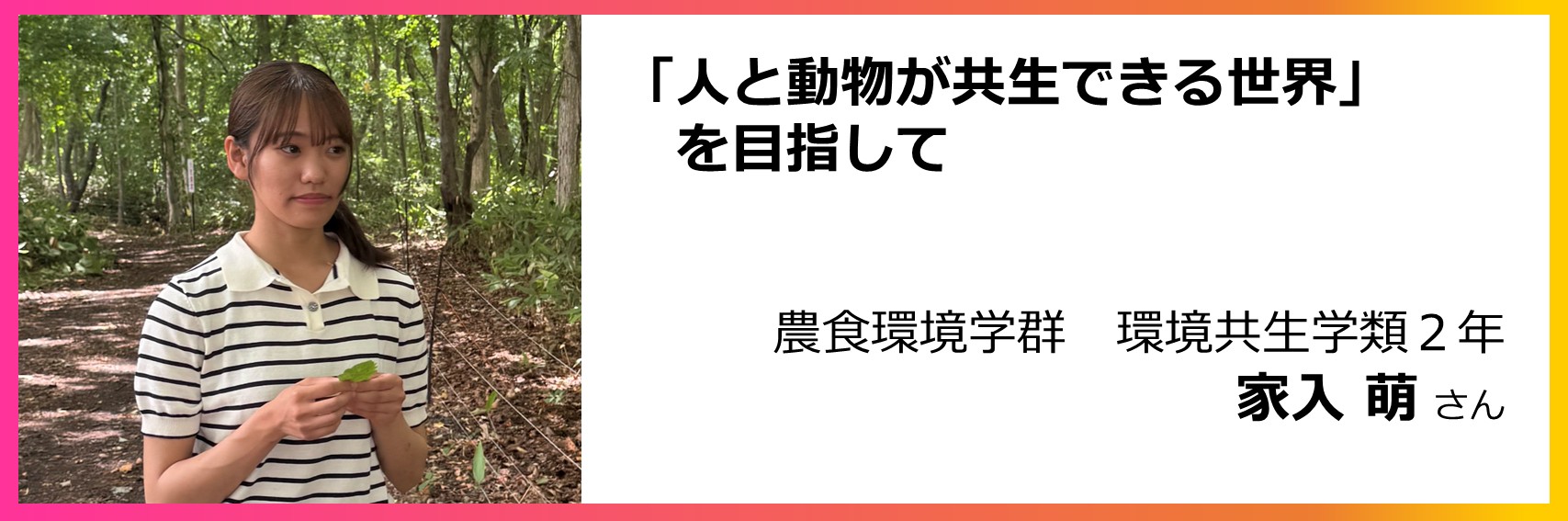 農・食・環境・生命をテーマに”生きているものすべて”を対象にした総合大学である酪農学園大学で学ぶ学生たちに、さまざまな話をインタビュー。授業や実習、学生生活のこと、まじめな話や、ちょっと意外なエピソードまで。 学びに向き合い、挑戦する学生たちのリアルな姿を紹介します。