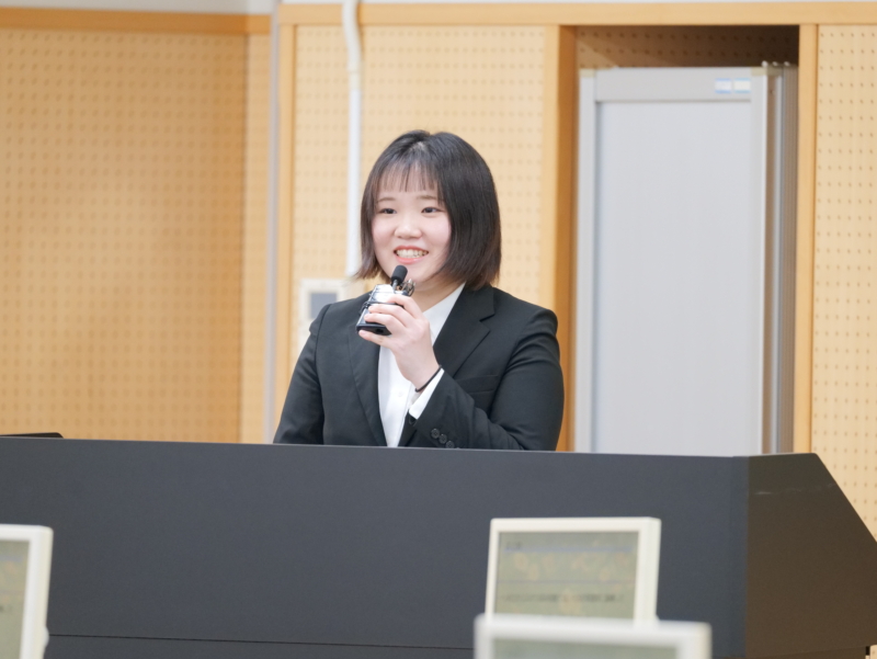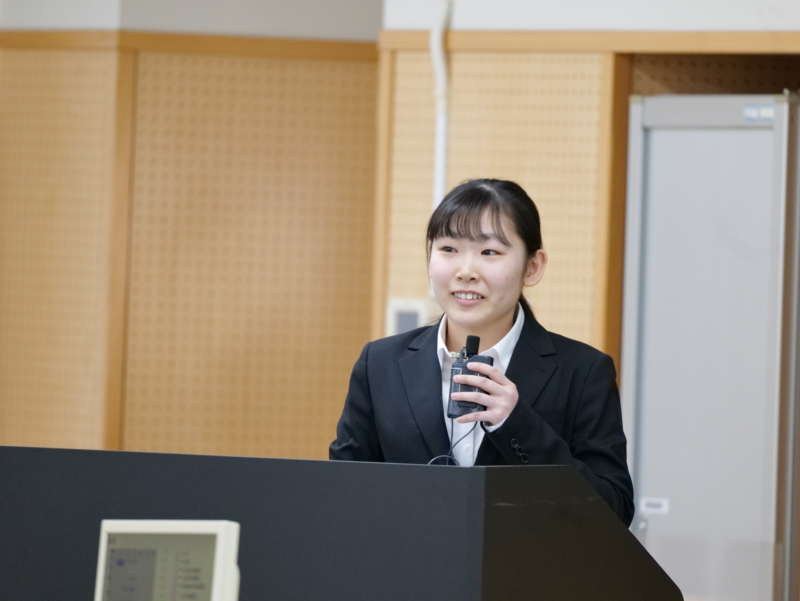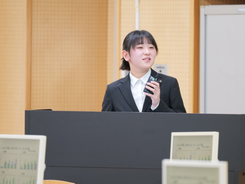 発表会では、学生一人ひとりが実験結果や研究成果をスライドにまとめ、定められた時間内で口頭発表を行いました。発表後には、教員や他の学生からの質問に答える質疑応答の時間が設けられ、活発な意見交換が行われました。
