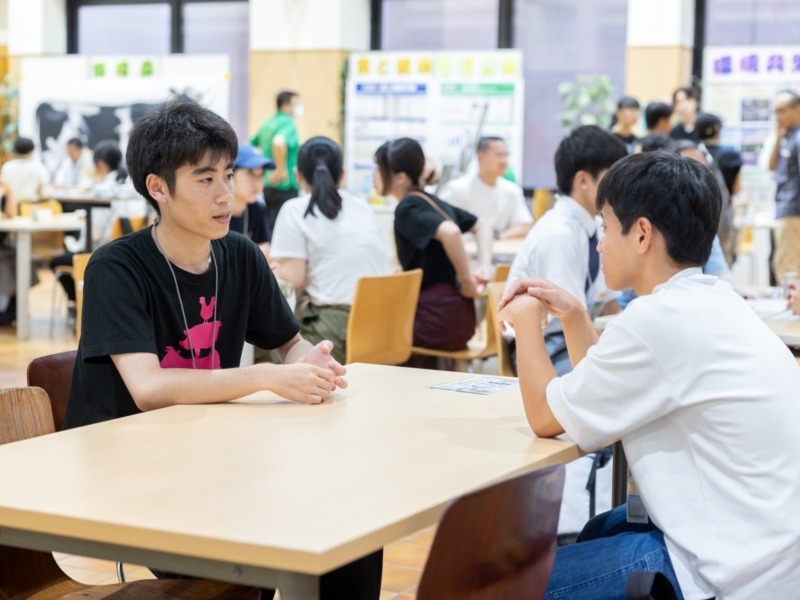 オープンキャンパスを機に「酪農学園大学に進学する」という目標ができたと同時に、自分を導いてくれた丹羽さんに影響を受け、自身も「丹羽さんと一緒にオープンキャンパスがやりたい!」と思うようになる。無事酪農学園大学に合格し、1年生からオープンキャンパススタッフとなり、自分と同じように進学や将来に悩む高校生の相談を受けてきた。2年生から4年生まではリーダーを務め、90人近くいるスタッフを取りまとめてきた。