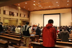 1月8日に行われた年明け最初の大学礼拝は、韓国からCCCのメンバーと江別文京台レインボー教会の金周煥牧師を迎え、黒澤記念講堂で行われました。