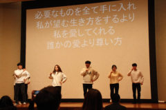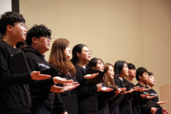 CCC(Campus Crusade for Christ)は、1951 年にアメリカで創設された学生による宣教団体で、世界の190 にも及ぶ国や地域で活動をしています。今回は韓国の忠南大学、ハンバツ大学、培材大学から18 名の学生が来学し、礼拝の中の祈りとして踊りや歌を披露しました。