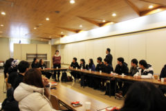 礼拝のあと、CCCのメンバーと本学の学生が講堂の2階に集まり、互いに交流を深めました。