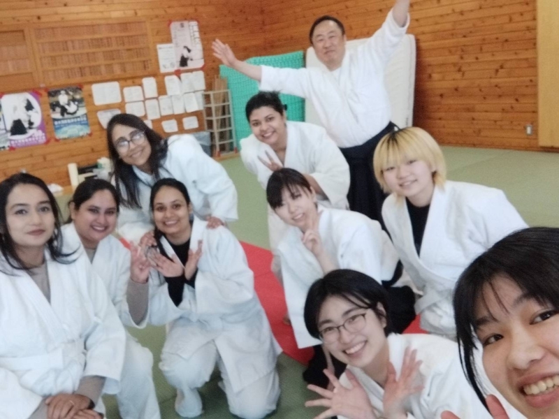 JSTさくらサイエンスプログラムでは、学術交流だけでなく、文化交流も推進しています。参加者は、江別市で茶道体験をした他、酪農学園大学合気道部の協力を得て合気道を体験しました。