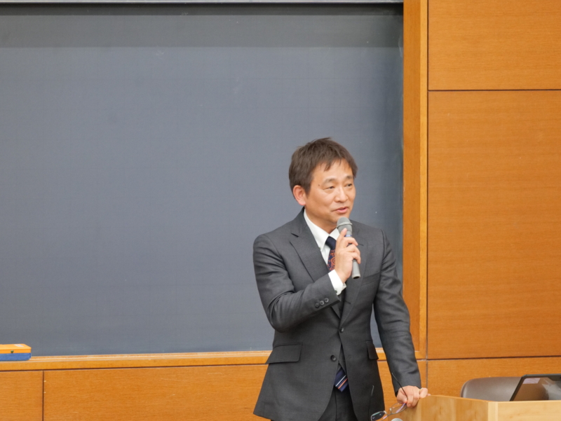 パネルディスカッションの第1部「環境リーダーを育成するための学問的基盤の重要性」では、農食環境学群長の小糸健太郎教授が登壇しました。2026年4月に開設する本学の「農環境情報学類」について解説したほか、野生動物と地球環境について学ぶ「環境共生学類」の学びの内容や、今後の教育の方向性について紹介しました。