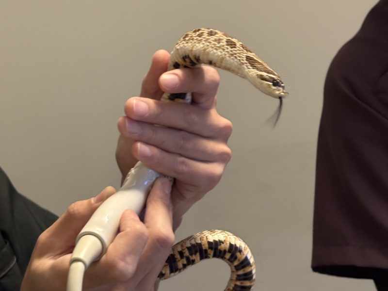 また、学会発表などを通じて最新の知見や技術を発信し、国内のエキゾチックアニマル医療全体の底上げにも貢献しています。 診療の質の”均一化”を目指すことも、大きなテーマの一つです。どの地域でも、どの動物病院でも、エキゾチックアニマルが適切な医療を受けられるようになること。そのために、大学病院として臨床データを蓄積し、エビデンスとして発信していくことが私たちの使命だと考えています。