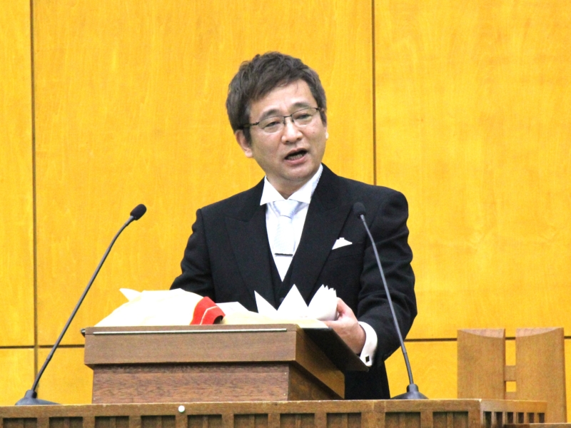 式典は、小林昭博大学宗教主任の司式のもとキリスト教の礼拝形式で行われました。