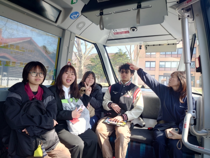 2026年4月6日(月)、本学において(株)マクニカ様の協力により、電気自動運転バスの試乗会を開催しました。今回は、オペレーターによる手動走行での実施となりましたが、教職員および学生・生徒あわせて約70名が参加し、次世代モビリティを体験しました。