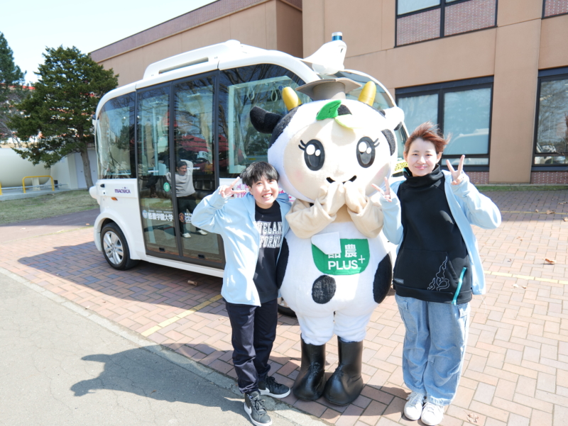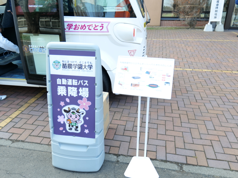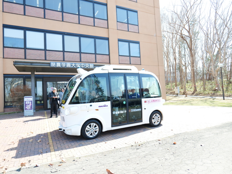 電気自動運転バスが、酪農学園キャンパス内を実証実験走行