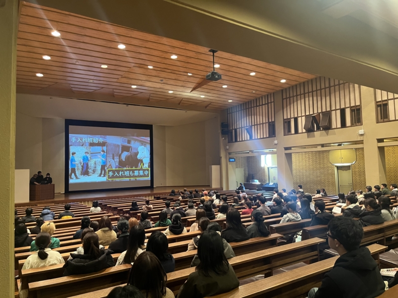 また、4月8日にはサークル合同で説明会が開かれ、多くのサークルがそれぞれの魅力を伝えて実際に活動の様子を新入生に披露して見せました。体育会系と文化系のサークル・クラブがそれぞれ黒澤記念講堂と中央館学生ホールに分かれ、それぞれの団体の魅力を新入生にアピールしていました。客席には多数の新入生が集まり、各団体の発表を熱心に見学していました。口頭での説明だけでなく、実際の活動の様子を伝えるための実演も行われました。