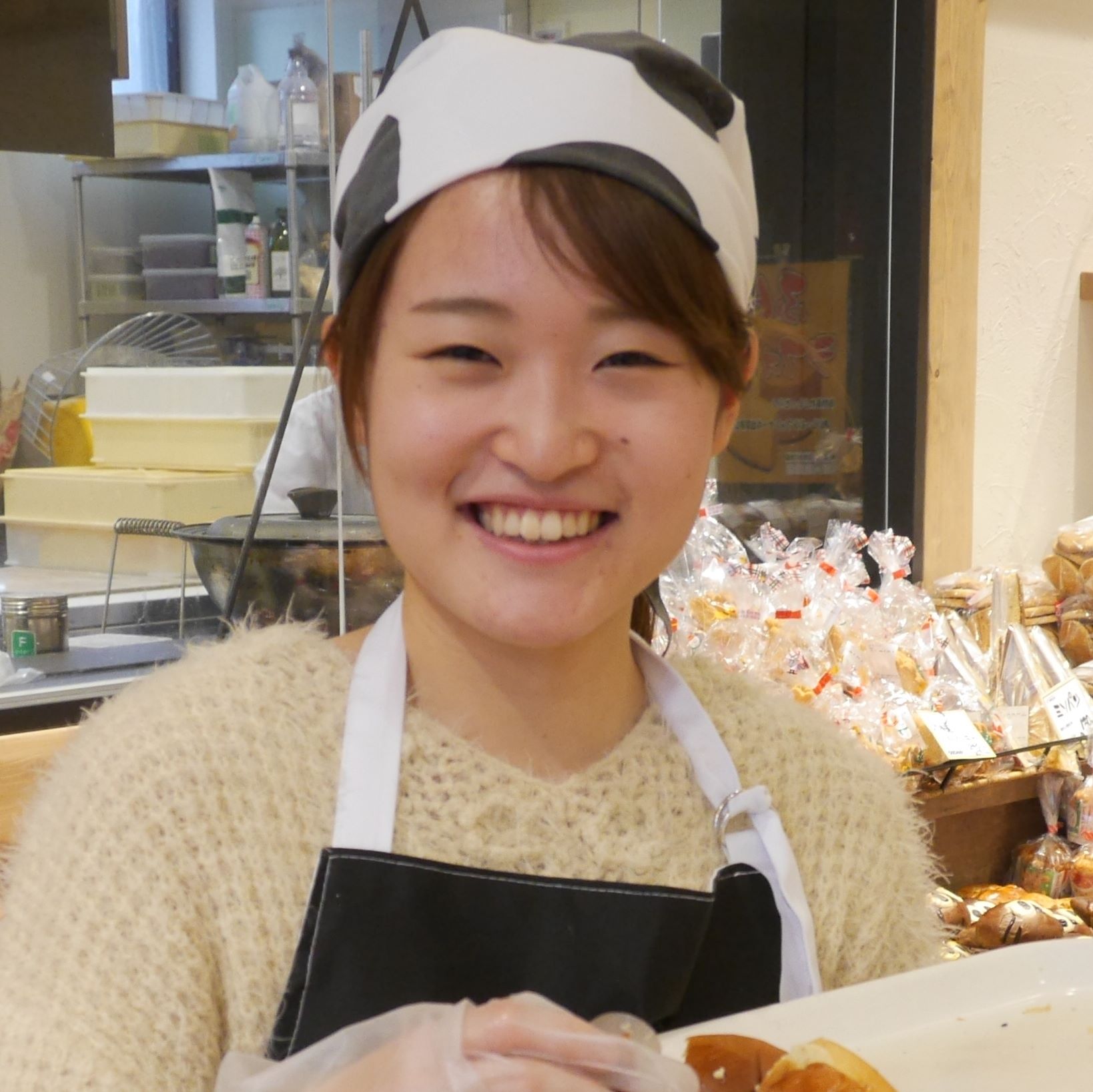 A あの限られたスペースの中で、あれだけの種類を出し続けているのに驚きました。そして、自分がつくった商品が明日、店頭に並ぶと思うとワクワクしました。今回は、自分のアイデアは商品化されなかったのですが、ゼミのメンバーのパン(和風ピロシキ)を手伝えたことがうれしいです。何より今日は、パンに囲まれて楽しかったです。