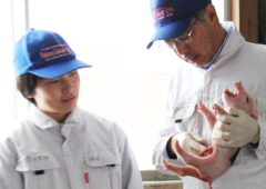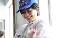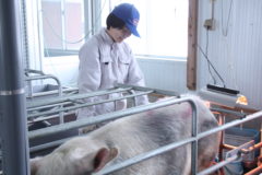 獣医保健看護学類の実習で豚のお産介助を学ぶ
