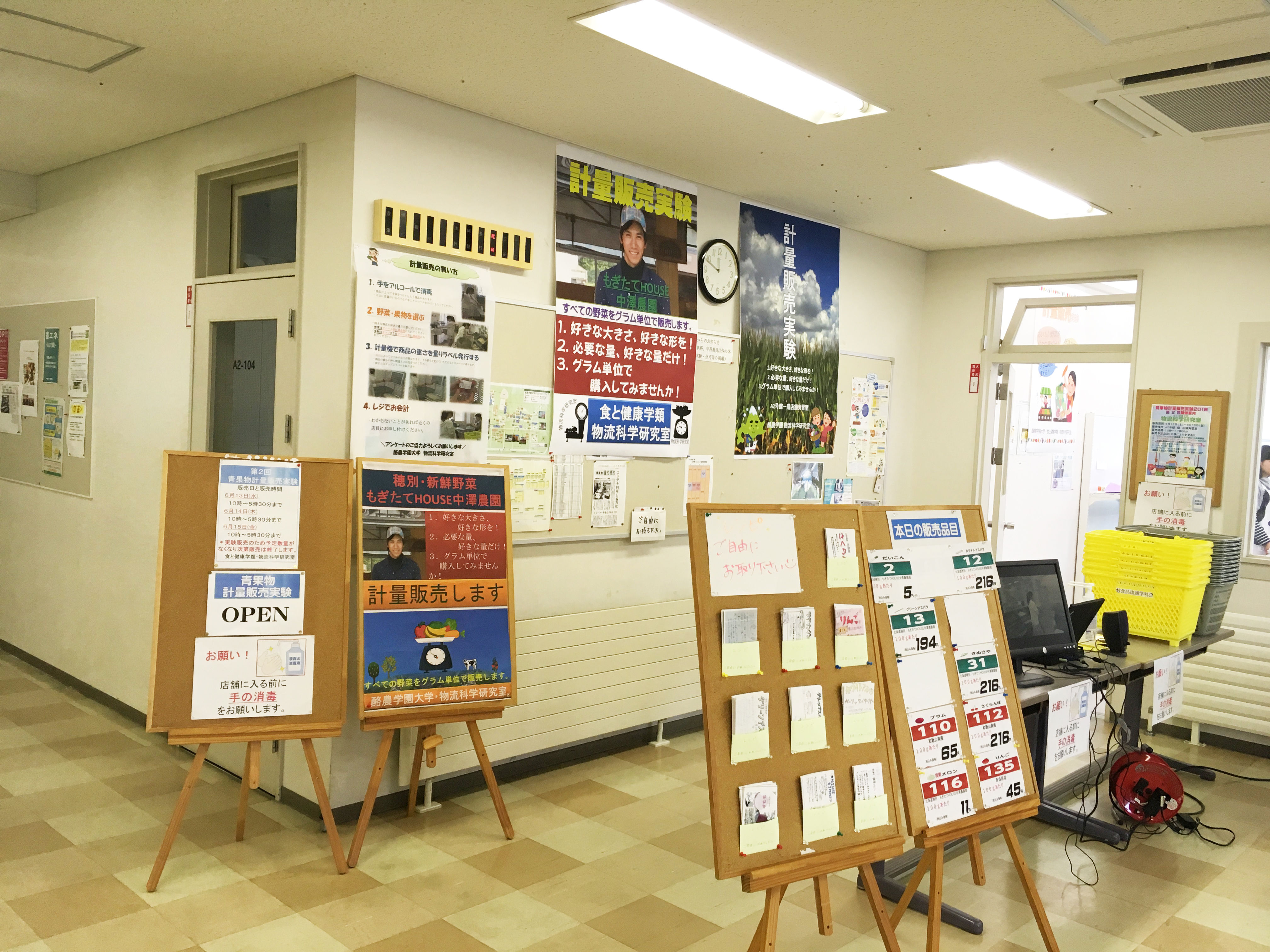この実験は、食と健康学類の物流科学研究室(尾碕 亨教授)が青果物の物流コストの削減や品質保全に関して調査するため、むかわ町穂別の『もぎたてHOUSE中澤農園』の協力のもと、2014年から始めたものです。今回、計量販売実験の4年間を振り返り、中澤農園の中澤誠弥さん(本学酪農学部農業経済学科2013卒業・現在27歳)に話しを伺いました。