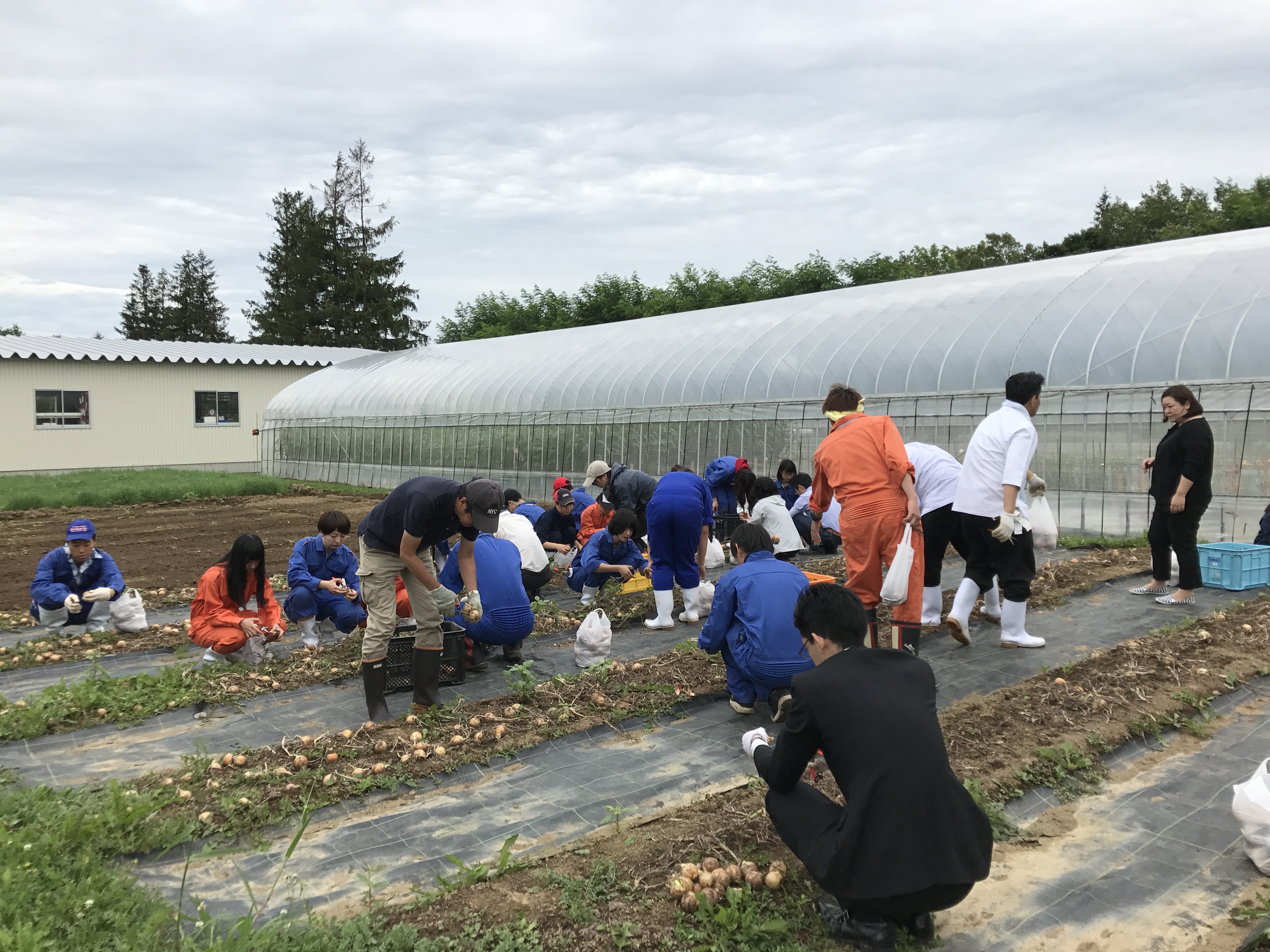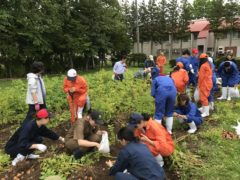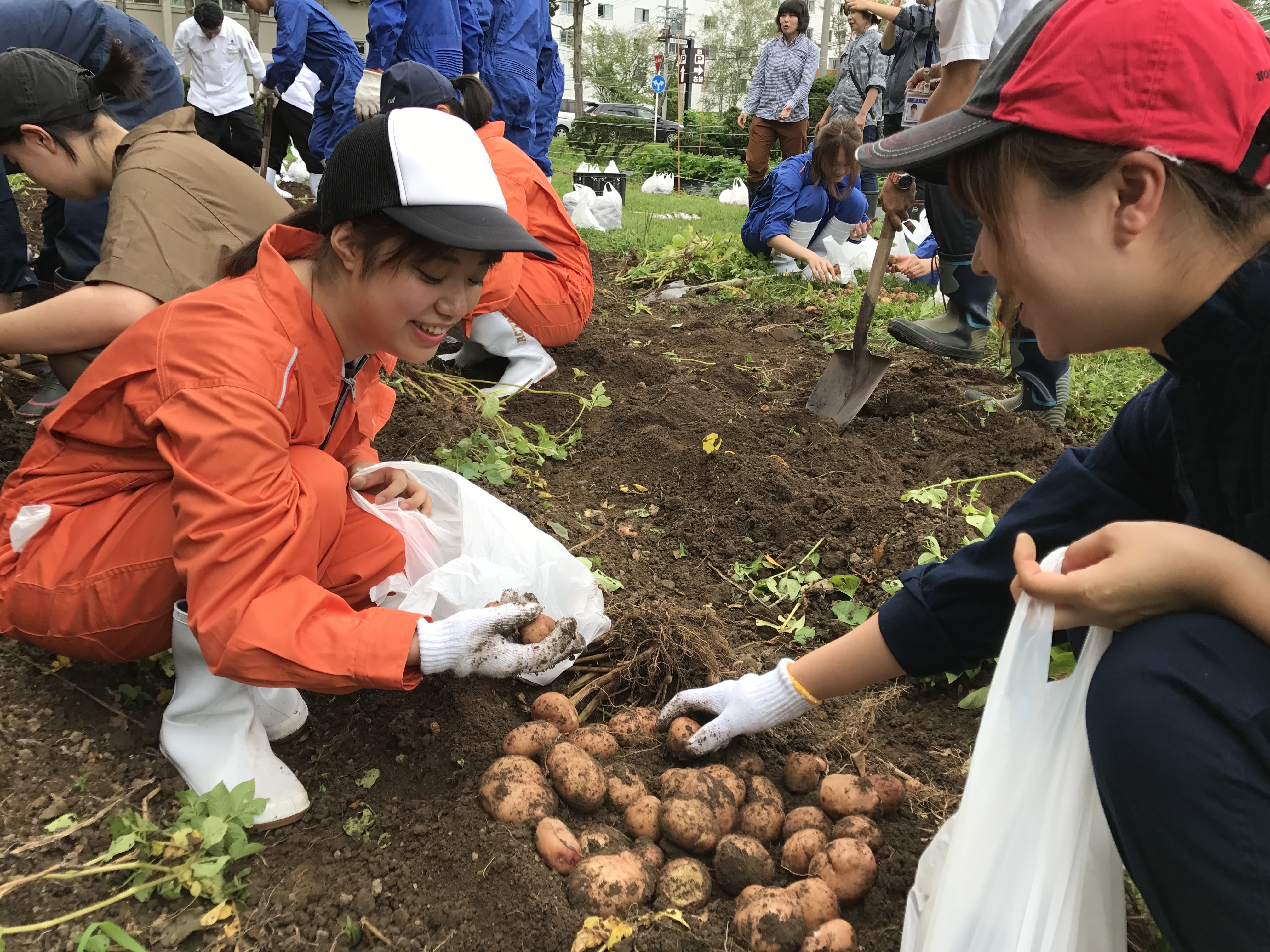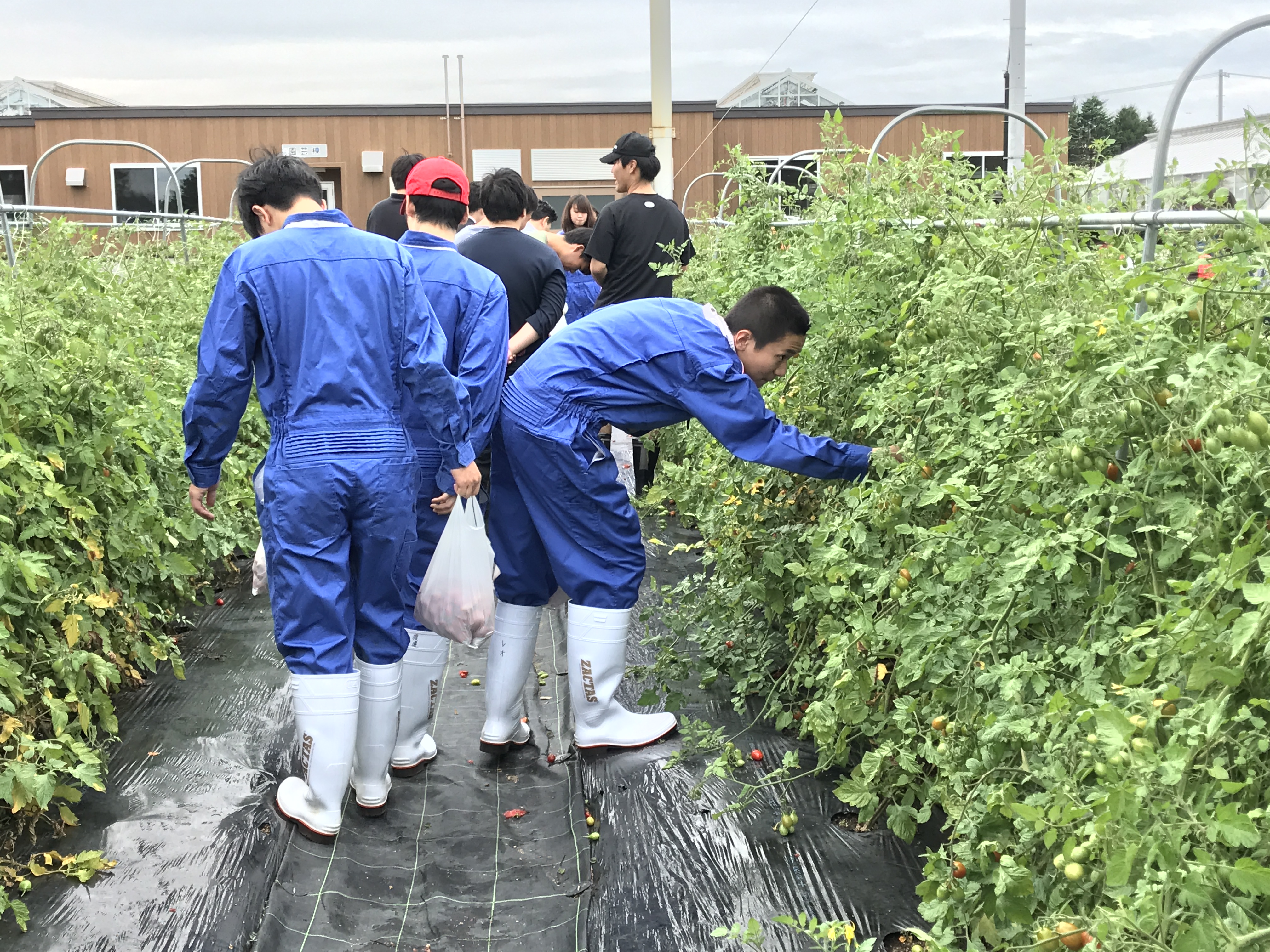 8月21日(火)に、本学と札幌グランドホテルとの連携協定に基づく取り組みとして、健土健民入門実習(1年生の基盤教育)で栽培した作物の収穫を学生とホテルスタッフが一緒に行いました。