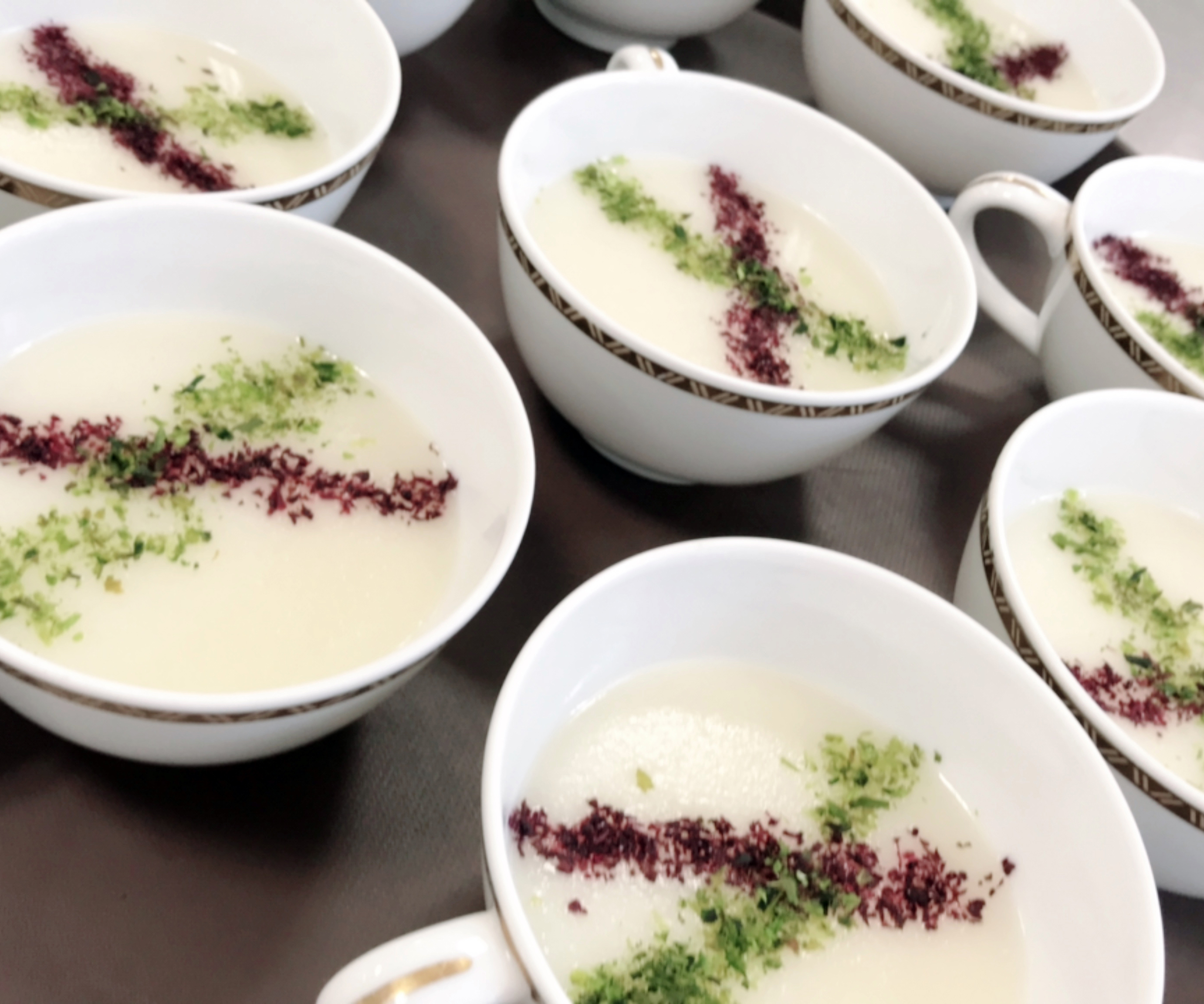 岡崎さんは「コンクールのタイトルの『みらい』という部分が印象的で、これから高齢化していく社会のために、食べやすく、なおかつ食べ応えのあるスープを作ろうと思いました。知人のおばあちゃんが咀嚼力が弱く孫と同じものが食べられないという話を聞き、家族みんなが一緒に楽しめるレシピを考えました。お米の部門を選んだのは、私の祖母がお米が大好きだからです。お米だけだと流動食っぽくなるのでじゃがいもを合わせ、手軽にできて濃度も高い和風スープにしました。