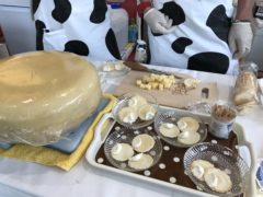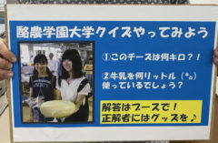 学生たちは、自分たちの研究を分かりやすく、身近に感じてもらおうと「チーズの重さ当てクイズ」などを行って来場者とコミュニケーションを図り、会場を盛り上げました。