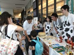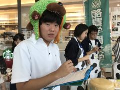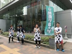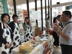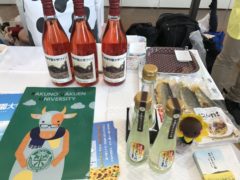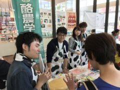 大学のオリジナル製品は学内の生協のみの販売となるため、チーズの試食をされた来場者のほとんどが本学で乳製品製造を行っていることが知られていませんでした。また、市町村や企業との商品開発に取り組んでいることやワインのブドウ作りから発酵・醸造学が学べることなど、学生たちにとって日頃の研究成果を紹介できる貴重な経験となりました。