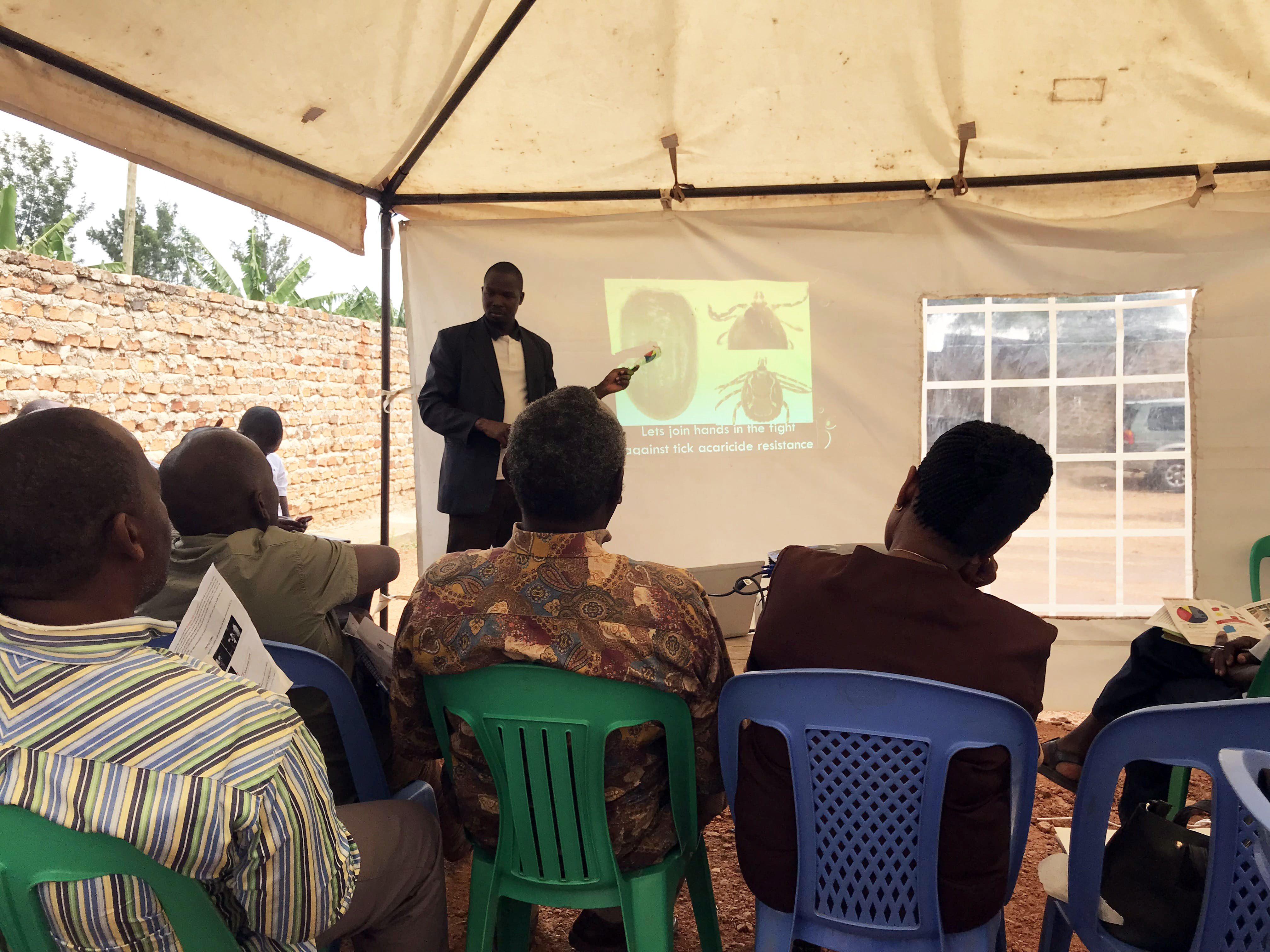 発表内容は、介入パッケージ(1.搾乳衛生、2.栄養・繁殖管理、3.ダニ媒介性疾病予防)について主に説明しました。また、首都カンパラにあるマケレレ大学から熱帯病・ダニの専門家であるDr. Patrickが特別講義を行ってくれ、内容はとても濃いものになったと思います。