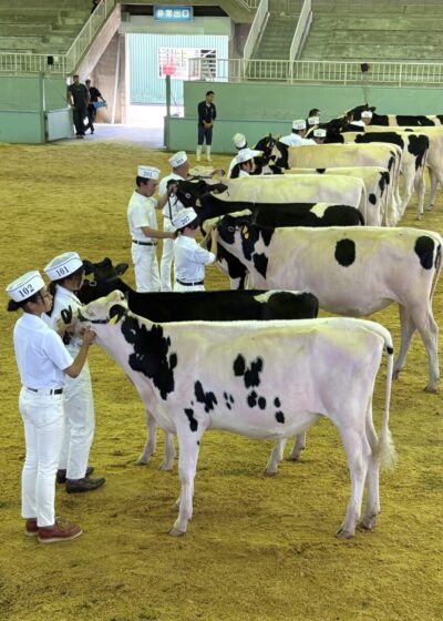 全国大会となる「第16回全日本ホルスタイン共進会」は、2025年10月25日(土)、26日(日)に今大会と同じ安平町の北海道ホルスタイン共進会場にて開催され、全国から約400頭の乳牛が集い、日本一を競います。本学の技師および学生がさらなる高みを目指して出場します。