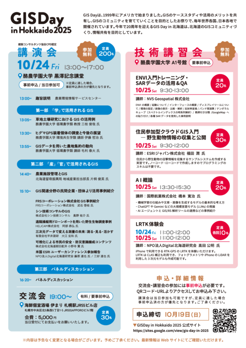 本学農業環境情報サービスセンターが事務局を担う「GIS Day in 北海道実行委員会」が主催する「GIS Day in Hokkaido 2025」が今年も開催されます。
