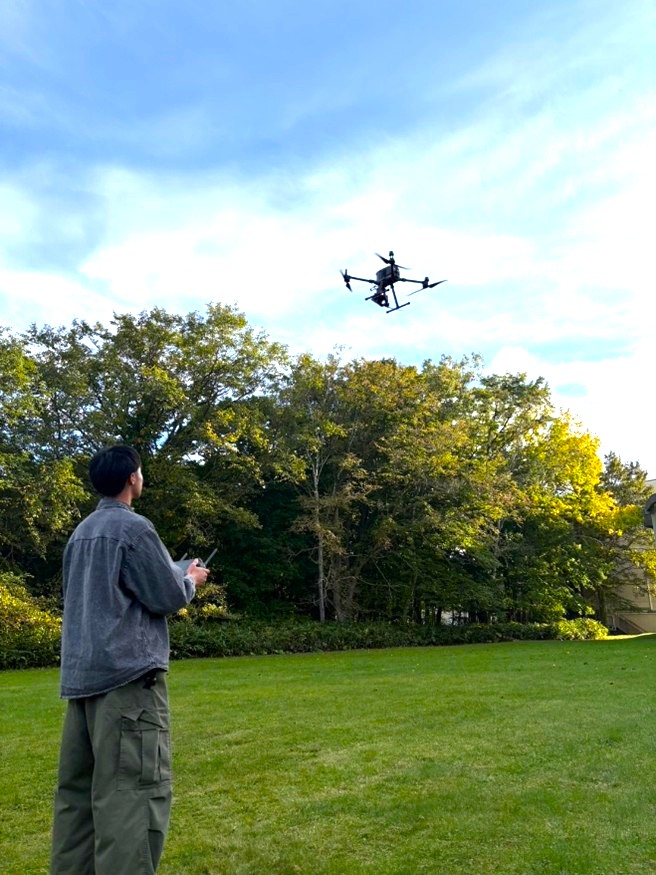 農環境情報学類(2026年4月開設)に所属予定の吉村暢彦講師(実践GIS研究室研究室)は、Lidarドローンの有効活用を目指して運用試験を行っています。