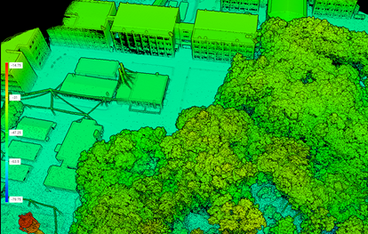Lidarは、レーザーで物体までの距離を測定し、3次元データを取得できるセンサーです。本学では所有するLidarドローンを使用して森林や農地の計測を行い、より効率的な管理技術の研究を進めています。3次元データの活用は、今後の計測作業の効率化のみならず、視覚的な情報共有や円滑な意思決定を支援するつーるとして必要不可欠です。