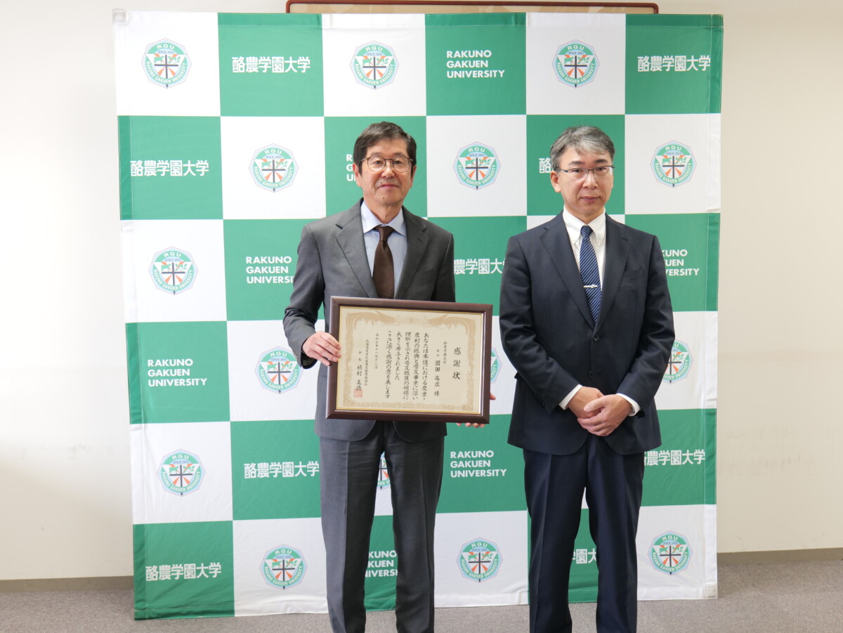 NEWS NO.84(2025年度)本学園田高広教授が北海道農業改良普及職員協議会より感謝状を贈呈されました