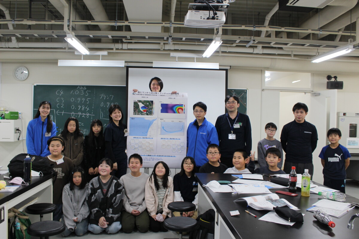 2025年11月15日(土)・16日(日)の2日間、浜頓別町ジュニアガイドアカデミーに所属する小学4~6年生13名が本学を訪れ、環境共生学類の吉田磨教授(環境地球化学研究室)、学類学生および大学院生とともに「実践環境学実習」を行いました。