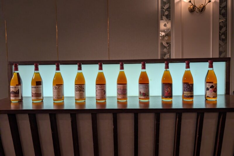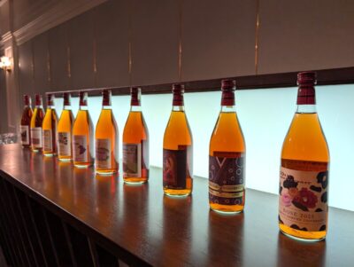 乾杯の後は、ワインにあう料理と共に今年のオリジナルワインの試飲となりました。過去のワインも用意され、飲み比べも行われました。