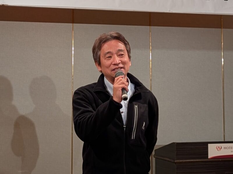 「10周年、誠におめでとうございます。私は大学構内のブドウ栽培管理の指導を担当しており、昨日も“ROWP”の学生と雪が降る中、学生たちと剪定作業を行いました。冷え込む中の大変な作業ですが、学生の皆さんはよく頑張っていました。10年の間、毎年、ブドウの木を整えてきましたがようやく最近、樹形が安定してきました。その成果もあり今年は多くのブドウを収穫することができました。猛暑の中での枝の誘引や草刈りなど、これまでの学生の努力が実を結んだ1年です。その苦労を思い返しつつ、今日はぜひ楽しんでください。」