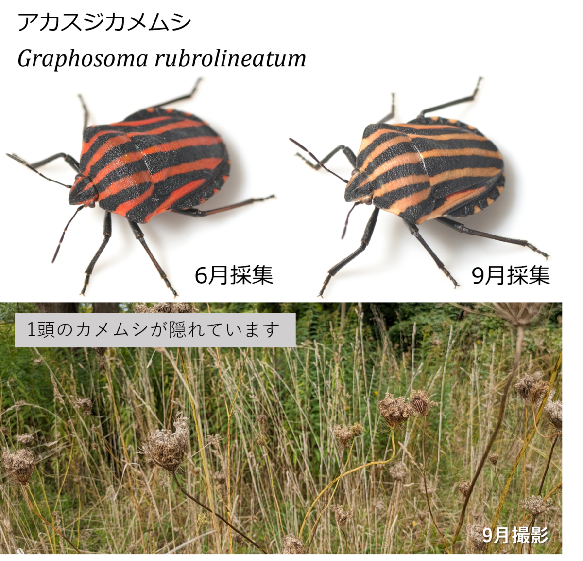 昆虫の幼若ホルモンは脱皮・変態、生殖、休眠など、さまざまな昆虫の生命現象に関わっている重要なホルモンです。幼若ホルモンはセスキテルペノイド骨格を有し、これまでに10種類ほど報告されており、ある程度分類群ごとに構造が異なります。例えば、JH 0, I, IIで、JHB3は高等ハエ目昆虫で、JH IIIは多くの昆虫で、JHSB3はカメムシ亜目昆虫で発見されています。私はその構造の多様性に興味を持ち、現在は特にカメムシ類の幼若ホルモンについて研究を行っています。また、昆虫が冬などの生存に不適切な環境を予測し適応するしくみについて研究を行っています。特に、季節適応の手段として多くの昆虫がもっている光周性(生物が日長や夜長に反応する性質)に興味があります。多くの昆虫は光周性によって発育や生殖を停止する休眠とよばれる特殊な生理状態に入り、冬などの不適切な季節をやり過ごします。