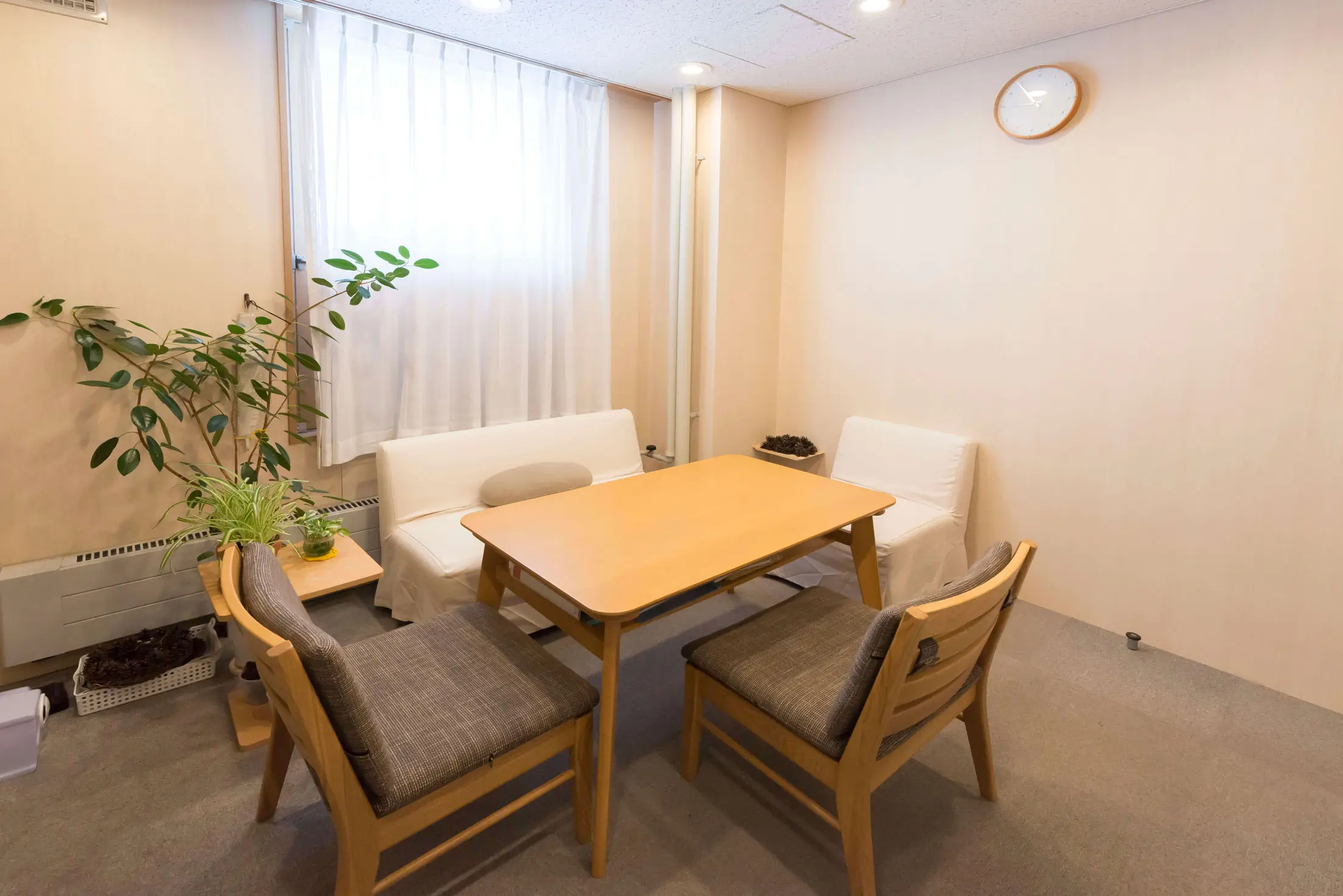 待合コーナーでは、休憩したり、心身に関する本や雑誌を読んで、くつろぐことができます。